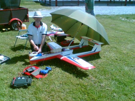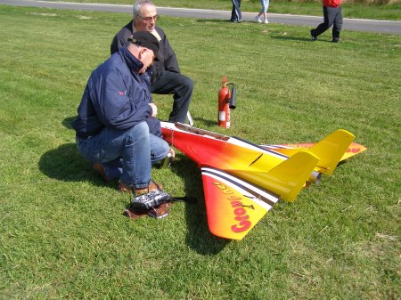 Nigel getting his new magic ready for flight, yes that is Stanley on the flightline with the funny shorts ! |