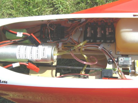 The insides of the Harpoon. Robert has fitted it with Spektrum 2.4Ghz using the AR9100 which has dual battery inputs and 4 receivers with a data log. |