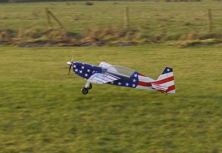 The old Prangster has proved itself again as being the ideal trainer, a student can attempt things much earlier than with a convention built up version, and can be allowed to attempt a landing at a very early stage. Even if he gets it wrong, he wont be going home with a bag of balsa ! |
