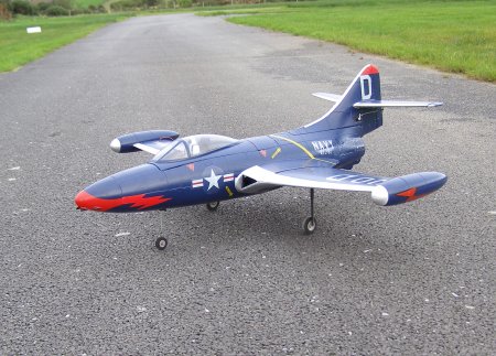 My new F9F2 Panther EDF, comes retracts and a alloy housing fan unit which gives it a very relistic turbine whoosh when it passes. |