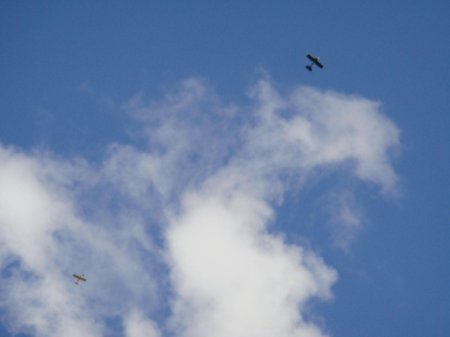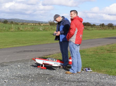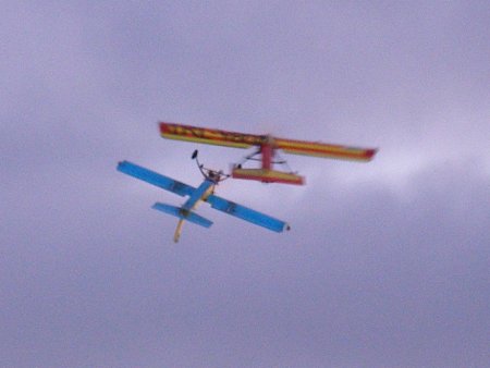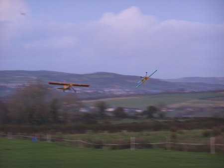 Clubs newest members Seamus and Ciaran Gibson flying their prangster complete with a whistling bomb release ! |