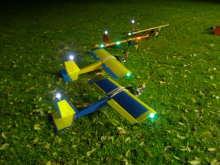The four prangsters took to the skies with the lights showing up well. The runway was lit with a big torch to aid landings and good fun was had.