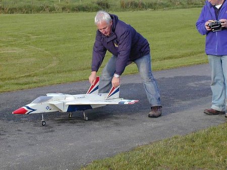 Bit of Jet flying on Friday night, George & Chris Irwin brought thier Boomerang down from Dungannon for its first flight. Unfortunatly all three flights resulted in flame outs and Chris done very well to put the Boomerang back on the strip each time. |