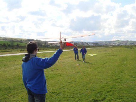 We done the first few launch's with Shane running with the glider and letting go once the prangster was airborne. Christopher was on the Tug pilot and I flew the Glider, Mac was towline manager ! |