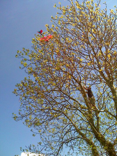 Took about an hour to get Stanleys Panic down from a tree that grabbed it when it flew past!