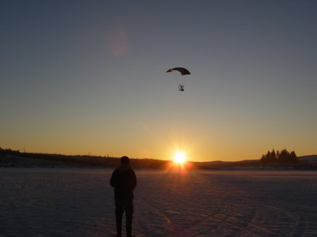 The conditions were so good flying continued, right until the sunset over the frozen lake which was quite a sight. |