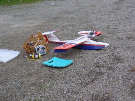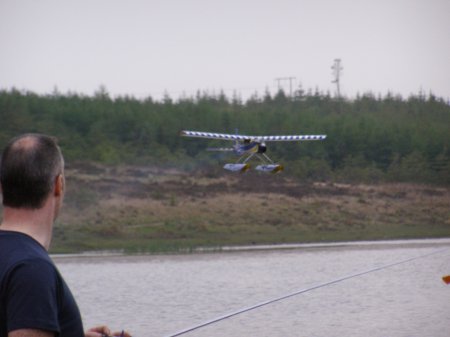 The wooden pier in the background behind Stanley is where we normally stand when flying off the water !