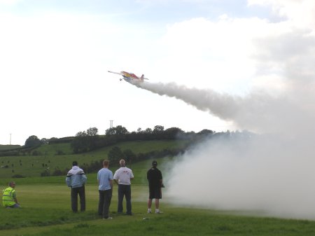 Dungannon has definatly became the main model fly-in of the calendar and it is great to have an event which is well attended, if only like many to just come along and watch. Mathew once again put on a superb display with his big DA150 powered Carden Extra 260.