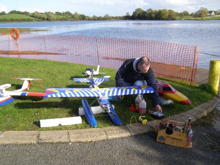 It was'nt all Heli's a few fixed wing models flew as well, having the benifit of ballymoneys two runways and no wind meant there were two flight lines all day. LMFC heli experts out on the flightline The last Floatplane flyin of the year took place at Eskragh on Saturday.