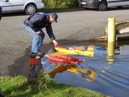 Stanley had his Ripmax Trainer which has flown a few times off water already and looks very good, fitted with an OS55AX and has bags of power. Lots of other nice models on floats, this one was seen before at the last flyin and looks like an acro wot with a very nice colour scheme.