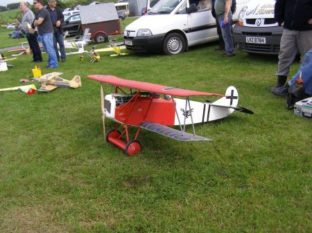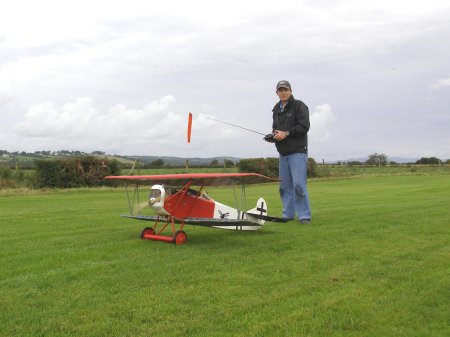 Some very nice models arrived, this is Cliffords Superb petrol powered 1/4 scale Fokker D.VII Mathew and the Nolans (that sounds like a 70's showband) We always put Gordon in a special Danger area before he flys :-)
