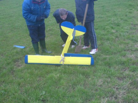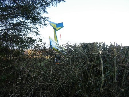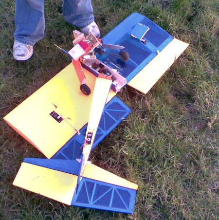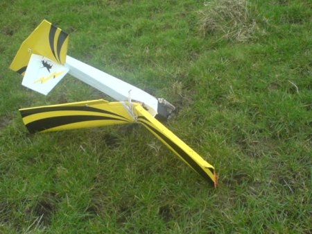 This is what happens when you fly too low inverted ! My ME109 was flying again 2 weeks later after a bit of glue! |