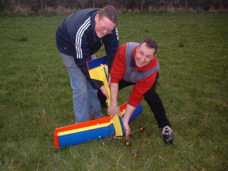 Stanley trying to extract his Prangster from the ground with Andrew Chambers helping out. I think they need a rope ! |
