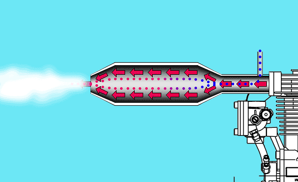 To make smoke you only need to do one thing: Get oil to reach its Smoke Point. The bad news is: That's a lot harder to do than it sounds. You only have one source of heat - your engine, and you can only access that source at one place - the muffler. The problem is that the exhaust is constantly moving through the muffler, so the oil doesn't get much time to get hot before it is blown out into the atmosphere, so you need to keep the oil inside the muffler for as long as possible. This is one reason why small 2-Stroke engine don't usually work well with smoke. Each stroke of the piston blows the contents of the muffler out, so the oil doesn't get very much time to get hot. Plus, the type of plane that would be powered by a .40 size 2-Stroke would probably suffer under the extra weight of a Smoke System. With larger (Gas) 2-Strokes, the amount of "Time-In-Muffler" is not a problem, due to their excessive heat. I have also had much success with Glow 4-Stroke engines.